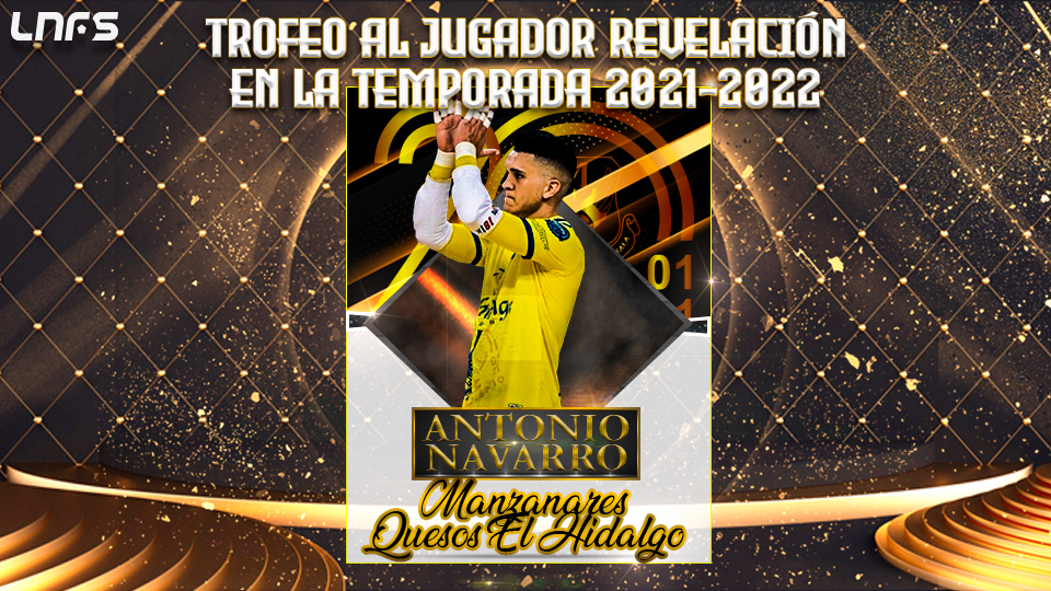 Antonio Navarro, jugador del Manzanares FS Quesos El Hidalgo, ha sido galardonado como el ‘Jugador Revelación’ de la Liga Nacional de Fútbol Sala en la temporada 2021/22. Así lo han decidido los capitanes y entrenadores de los equipos de Primera División al depositar, con sus votos, su confianza por delante de Juanan (Real Betis Futsal) y Gordillo (Palma Futsal), que completaban la terna de nominados propuestos por aficionados y medios de comunicación en dicha categoría.