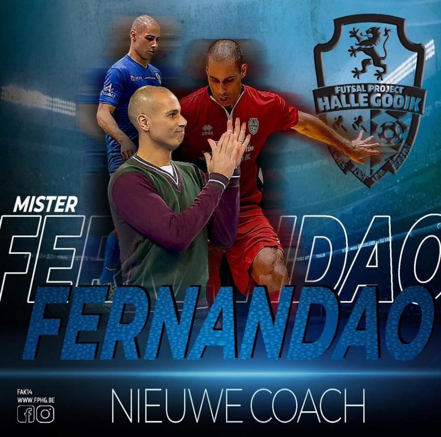Cuatro meses después de retirarse como jugador en el FP Halle-Gooik, regresa al equipo belga para sentarse en el banqullo. Fernandao es uno de los mejores pívots de la historia tras jugar en el Barça Lassa del 2007 al 2014 anotando 197 goles y levantando 17 títulos.