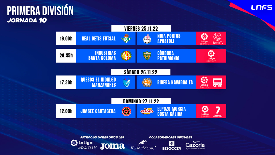 El siempre esperado derbi regional entre Jimbee Cartagena y ElPozo Murcia Costa Cálida cerrará el domingo la Jornada 10 de Primera División a la 12:00 en LaLigaSportsTV y La7. Los cartageneros, terceros clasificados con una espectacular dinámica de cuatro triunfos seguidos reciben a una escuadra murciana en la cuarta plaza, tras sumar 12 de los últimos 15 puntos.