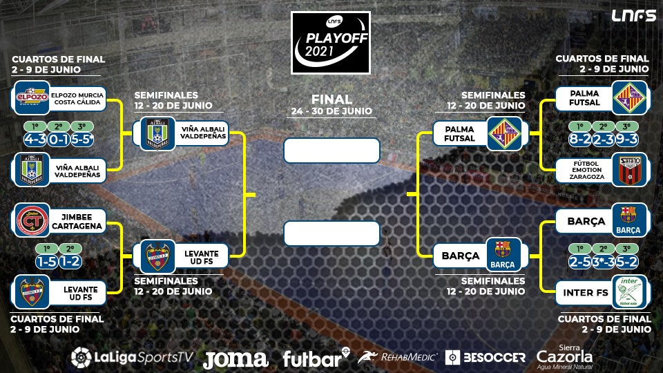 Viña Albali Valdepeñas disputará su segunda Semifinal del Play Off por el título (al igual que Levante UD FS jugó la primera en la temporada pasada, llegando a ser finalista) tras imponerse en tres partidos a ElPozo Murcia Costa Cálida en una eliminatoria que remontó. El Levante UD FS logró el pase a las Semifinales tras vencer sus dos primeros encuentros de Cuartos de Final al Jimbee Cartagena. Por segunda vez en su historia el conjunto granota se clasifica para Semifinales de Liga, tras hacerlo la campaña pasada en el Play Off con formato exprés celebrado a consecuencia de la pandemia por COVID-19.