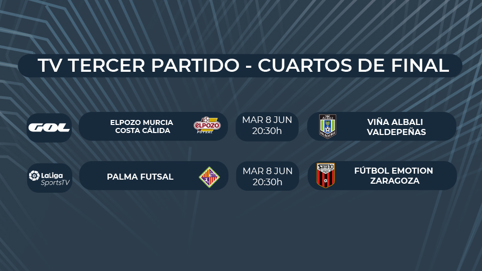 Las cámaras de GOL se desplazarán hasta Murcia para emitir en directo el tercer y definitivo encuentro entre ElPozo Murcia Costa Cálida y Viña Albali Valdepeñas, dos equipos que se miden en un partido de poder a poder y en el que intentarán batir a su rival para lograr el pase a la siguiente ronda.