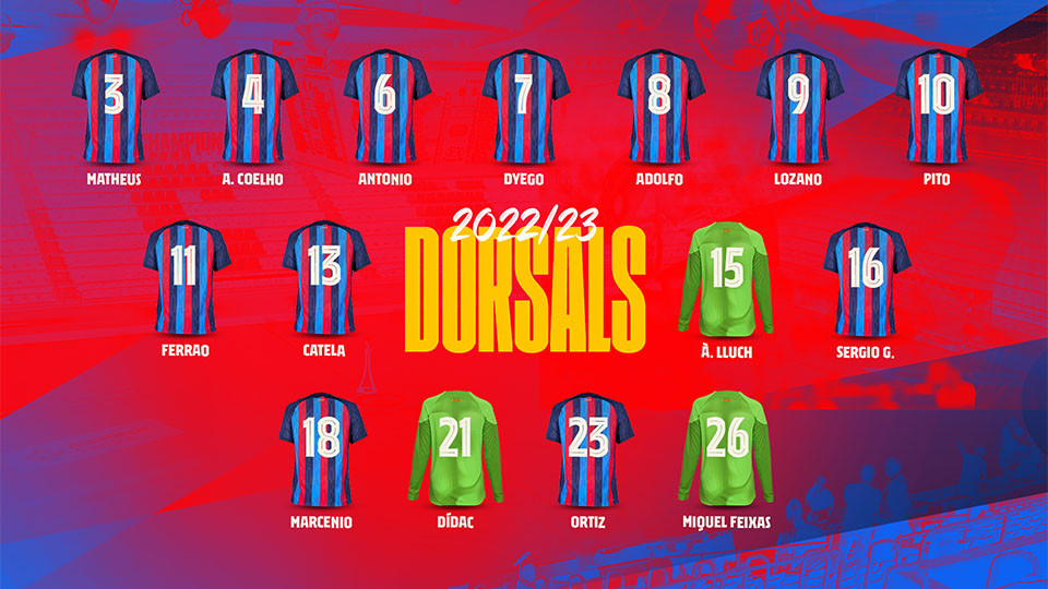 El Barça ha dado a conocer los dorsales para la nueva temporada 2022/23. Con ello se resuelve la duda de quién se iba a quedar con el dorsal 10 que dejaba vacante Esquerdinha. Ahora el 10 será para Pito por petición propia, en vez del 17 que tenía la pasada temporada.