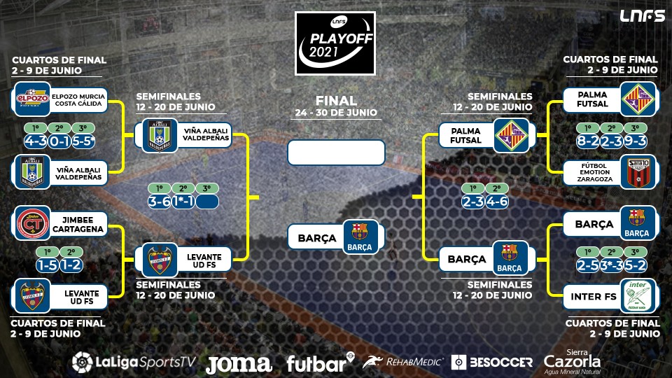 El conjunto manchego logró batir al Levante UD en la tanda de penaltis y forzó el tercer encuentro de las Semifinales en un partido que estuvo presidido por la figura de Javier Lozano, presidente de la Liga Nacional de Fútbol Sala. Cainan fue expulsado en el minuto 2 de partido. En el segundo tiempo, Esteban adelantó a los visitantes con un cañonazo y Dani Santos lo empató con un golazo de espuela. En la prórroga, ambos equipos pudieron decantar el duelo pero, finalmente, los de David Ramos se llevaron la victoria en los penaltis con un resultado de 4-3.