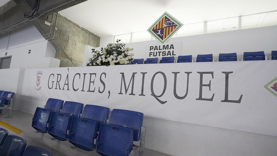 Fue la imagen que quedó para todo el partido, con el palco vacío durante todo el encuentro y luciendo una pancarta con el lema "Gràcies, Miquel". Acto seguido se procedió a uno de los minutos de silencio más sobrecogedores que se recuerdan en el recinto, con toda la plantilla al completo abrazada en el círculo central, con María y Miquel, los hijos del presidente del Palma, en plena pista arropados por el vicepresidente del club y amigo íntimo de Miquel Jaume, Tomeu Quetglas, del director general, José Tirado, con todos los trabajadores del club y apoyados por Javier Lozano, presidente de la LNFS. En la otra parte de la pista, el Córdoba Patrimonio, que cedió el círculo central al equipo palmesano para que ocuparan la pista para rendir el tributo a su difunto presidente. Nunca antes se había vivido un momento tan emotivo en Son Moix, con un acto sencillo, simbólico y muy sentimental.