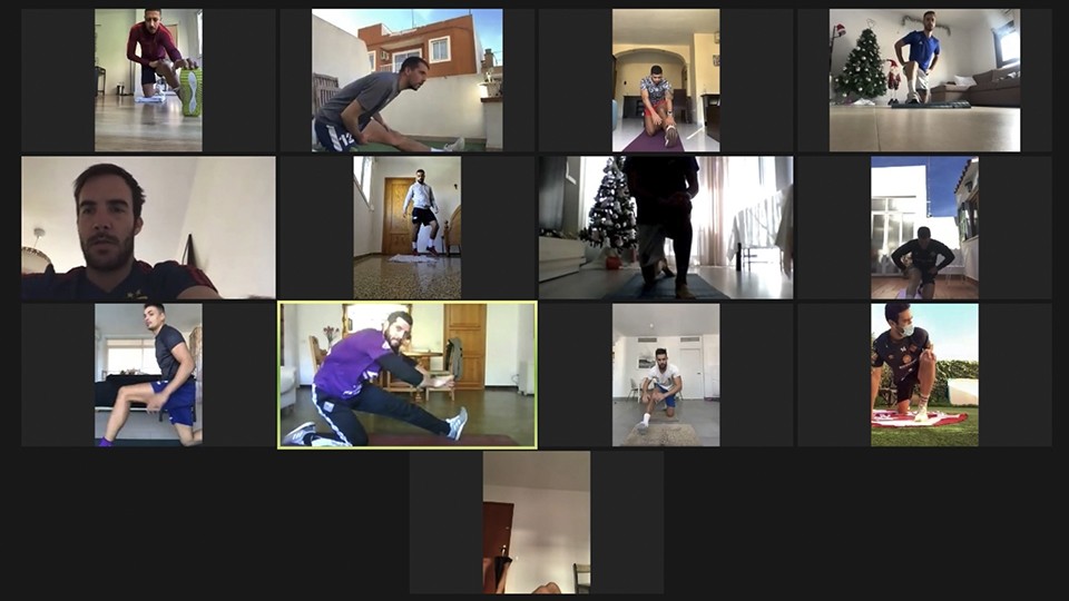 En la sesión han participado los jugadores que están disponibles, los que dieron negativo y algunos de los positivos asintomáticos o que ya están recuperados pese a que tienen que cumplir todavía con el confinamiento caso de Fabio, Cainan, Tomaz, Nunes, Chaguinha o Vilela, este último, se unió a la última sesión una vez recuperado y para realizar algunos ejercicios que pretenden que los deportistas tengan un mínimo de actividad con ejercicios que se pueden realizar en casa. Otro como Carlos Barrón ha participado de la sesión con su bici estática, compañera inseparable en estos días de aislamiento.