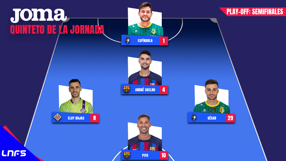 El cierre titular en el primer y segundo partido de la eliminatoria para Jesús Velasco, también lo tenía que ser del Quinteto ideal de la LNFS en esta ronda de Semifinales del Play Off. El campeón del Mundo con Portugal es una de las piezas más valiosos de este Barça en un Final de Liga donde está en juego el título nacional y el pase a Europa. El cierre ex de SL Benfica demostró en ambos partidos ser el eje vertebrador de un equipo. Tal es así que a la tradicional contundencia defensiva y salida del balón le agregó un gol crucial contra Inter FS en el segundo encuentro de la serie que, a la postre, serviría a los barcelonistas para asegurar su presencia en la gran Final.