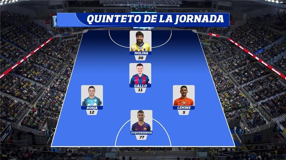 Las alas son para Borja, jugador de Movistar Inter, y Lemine, del Aspil-Vidal Ribera Navarra. El interista sigue en su buen estado de forma, después de anotar tres tantos en la victoria frente al Fútbol Emotion Zaragoza. Por su parte, el gaditano de la escuadra navarra abrió la lata con dos tantos en el triunfo ante el Viña Albali Valdepeñas que permite a los navarros seguir luchando por meterse en la Copa de España Valencia 2019.