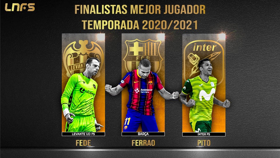 Una vez concluido el pasado jueves 15 de julio el plazo designado para realizar votación, los aficionados al Fútbol Sala y los medios de comunicación ya tienen a sus preferidos para ser el ‘Mejor Jugador’ de la temporada 2020/21. Fede (Levante UD FS) nominado a ‘Mejor Portero’, Ferrao (Barça) y Pito (Inter FS), candidatos al ‘Mejor Pívot’, se encuentran entre los tres finalistas a ser elegidos el jugador más determinante de la Liga Nacional de Fútbol Sala.