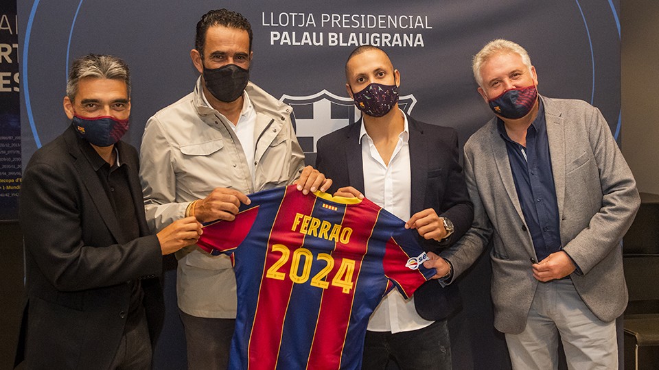 El FC Barcelona y Ferrao han llegado a un acuerdo para ampliar el contrato del pívot brasileño y actual mejor jugador del mundo hasta el 30 de junio de 2024. Es la tercera renovación de Ferrao con el Barça, que vive la séptima temporada en el Club y tenía contrato hasta el próximo 30 de junio. Con este nuevo acuerdo Ferrao, que ahora tiene 29 años, será culé hasta los 33 años, con opción a una temporada más. Una gran manera de celebrar que ya está completamente recuperado de la grave lesión en el tendón de Aquiles que le mantuvo fuera de las pistas casi toda la temporada pasada.