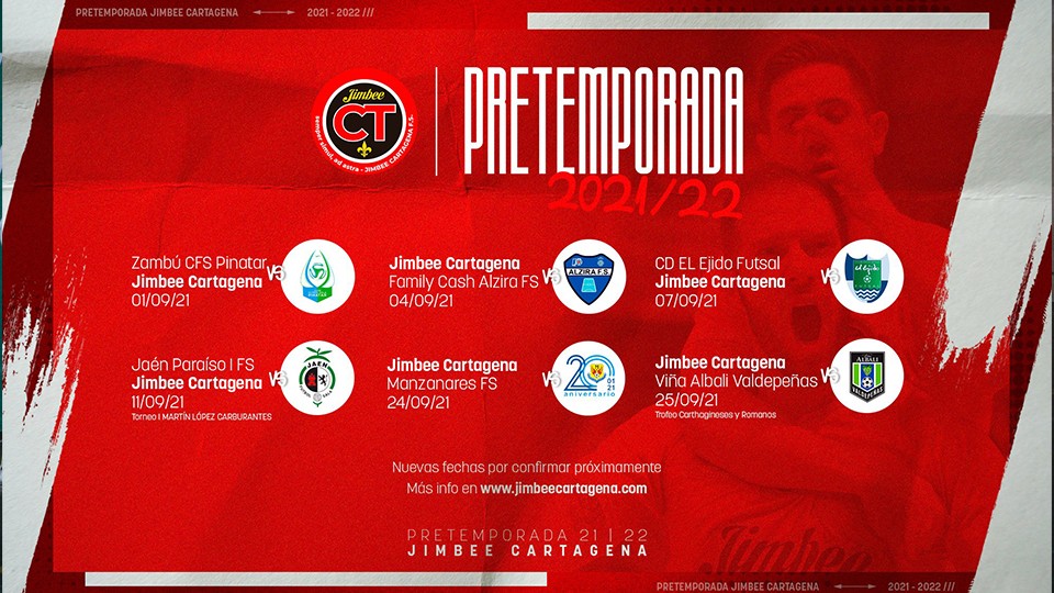 Para el viernes 24 de septiembre, Jimbee recibirá en casa al recién ascendido a la máxima categoría: Manzanares FS Quesos El Hidalgo y, tan solo un día después, el sábado 25 de septiembre, los de Duda se presentarán ante su afición disputando el Trofeo Carthagineses y Romanos ante Viña Albali Valdepeñas.