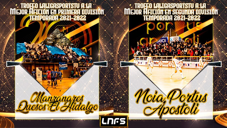 Manzanares FS Quesos El Hidalgo y Noia Portus Apostoli, Trofeo LaLigaSportsTV a las Mejores Aficiones de la Temporada 2021/22 en Primera y Segunda División