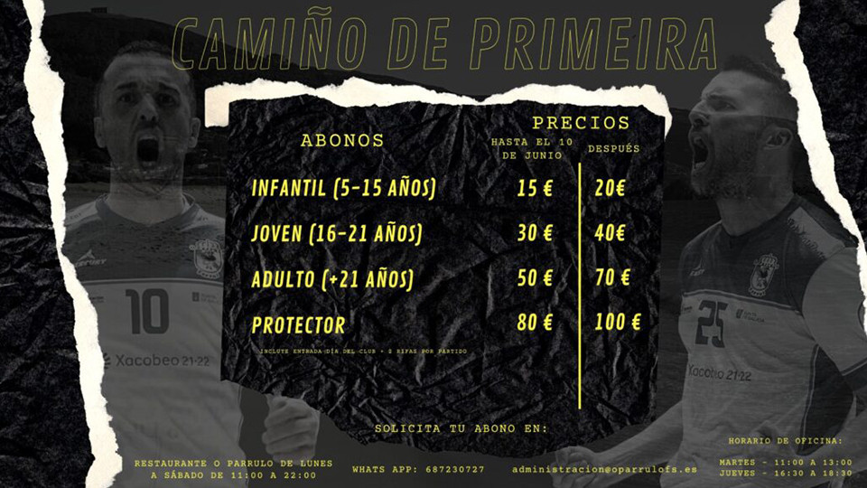 Los jugadores de la Escuela de Fútbol Sala de O Parrulo Ferrol que formen parte del club en la temporada 2022-2023 dispondrán de un abono gratuito, por lo que no tendrán que darse de alta en esta campaña de abonados.