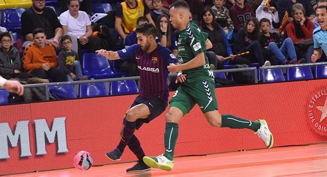 Ambos equipos saltaron con mucha intensidad al Palau Blaugrana lo que provocó que nada más comenzar el encuentro los dos escuadras contasen con las primeras ocasiones de peligro para estrenar el marcador. El baluarte ofensivo de los de Irurtzun, Rafa Usín, contó con la primera ocasión sobre la portería defendida por Juanjo. Mientras que, por parte de los locales, Dyego tuvo la réplica con un remate que se marchó fuera de la meta defendida por Asier. En el cuatro, Aicardo con un potente disparo escorado buscó sorprender a Asier con un chut que acabo enviando el portero verde a saque de esquina.  Los de Andreu Plaza poco a poco se fueron haciendo con el dominio del balón lo que hizo que los de la Ciudad Condal llegasen con más insistencia al área de los de Navarra.