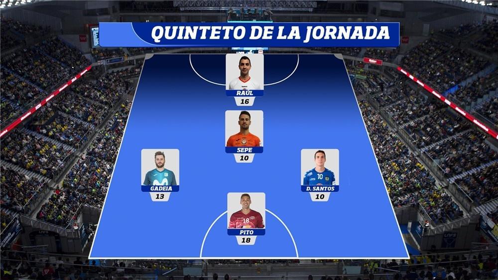 En los alas se encuentran Dani Santos, autor de un ha-trick en el empate del Viña Albali Valdepeñas ante Industrias García y Gadeia, bigoleador en la contundente victoria de Movistar Inter sobre O Parrulo Ferrol. Ambos jugadores fueron imprescindibles para sus respectivos equipos, ya no solo por sus goles, sino por su liderazgo dentro del 40x20.