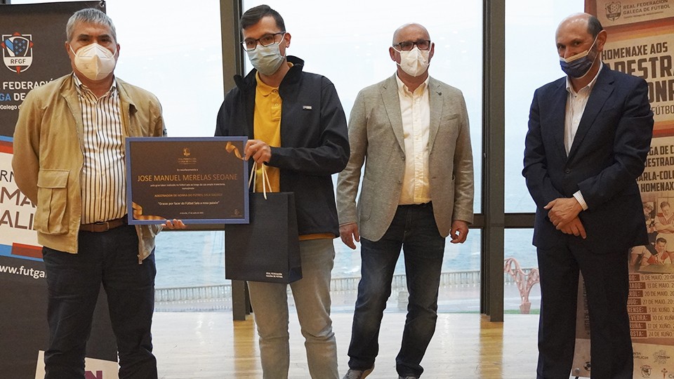 Sergi Blanco, de la Academia Red Blue 5 Coruña, participa en el homenaje de la RFGF a los "Entrenadores de Honor"