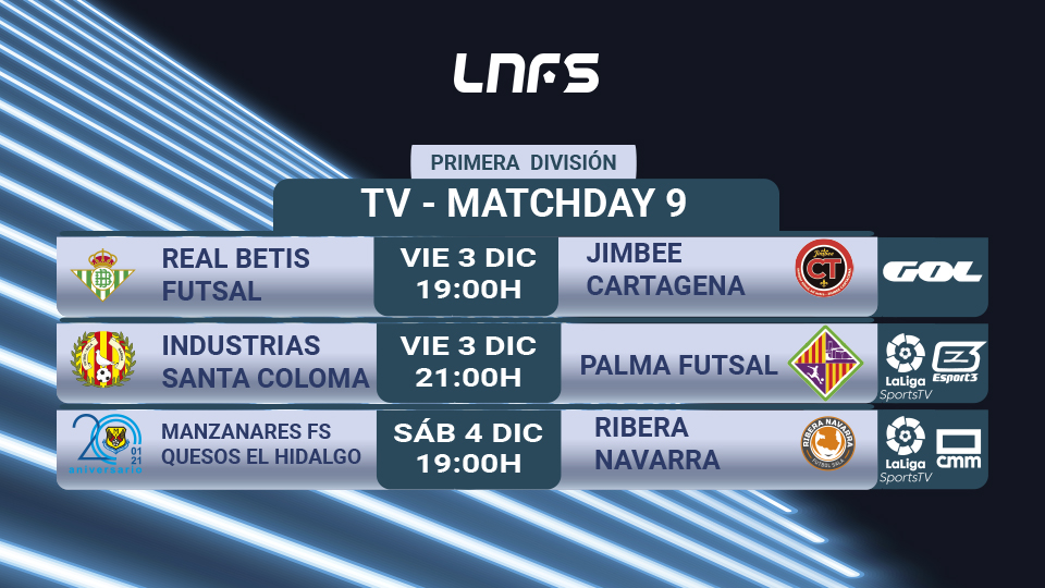 A las 21:00, Industrias Santa Coloma y Palma Futsal se enfrentarán con las cámaras de LaLigaSportsTV y Esport 3 como testigo. Los colomenses llegan a la Jornada 9, después de encadenar tres partidos de Liga sin ganar, mientras que la escuadra palmesana afronta el duelo tras vencer después de tres encuentros sin hacerlo.