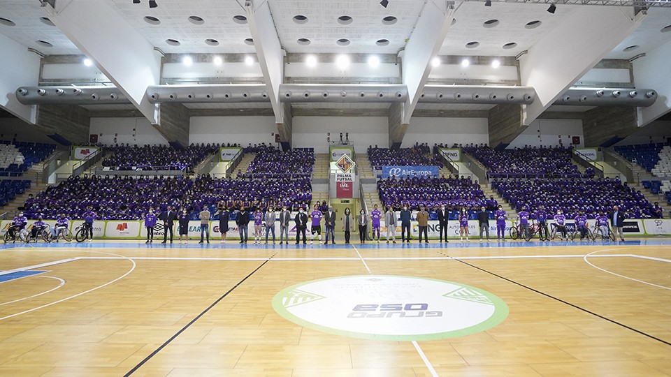 La Fundació Miquel Jaume - Palma Futsal y el proyecto de Conectabalear ayuda a casi 1.700 deportistas de Mallorca de nueve deportes diferentes y de todas las edades. La gran mayoría de ellos se dieron cita en el pabellón para llenar la grada lateral uniformados con la equipación oficial y realizar una foto de familia en una imagen insólita hasta la fecha de unidad del deporte balear.