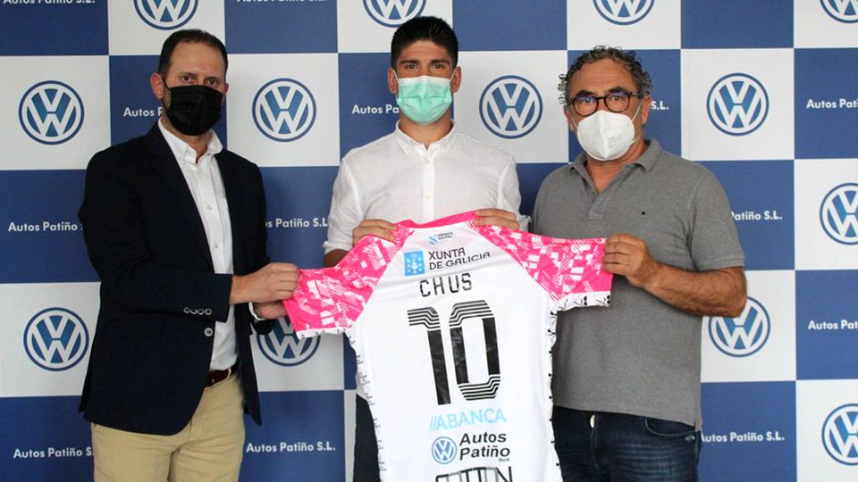 Veintidós días después de hacerse oficial su firma por el Noia Portus Apostoli FS, Chus era introducido como nuevo jugador del cuadro blanco en un acto acogido en la casa de uno de los colaboradores del club, Autos Patiño Noia.