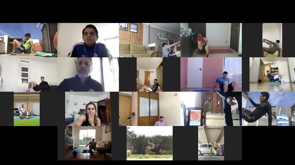 Cada martes y jueves, toda la plantilla entrena a la vez de forma virtual a través de una videollamada en grupo. El confinamiento se alargará varias semanas más y de esta forma se busca un mejor trabajo de los jugadores desde sus casas y que complementen los ejercicios que realiza cada uno de forma individual.