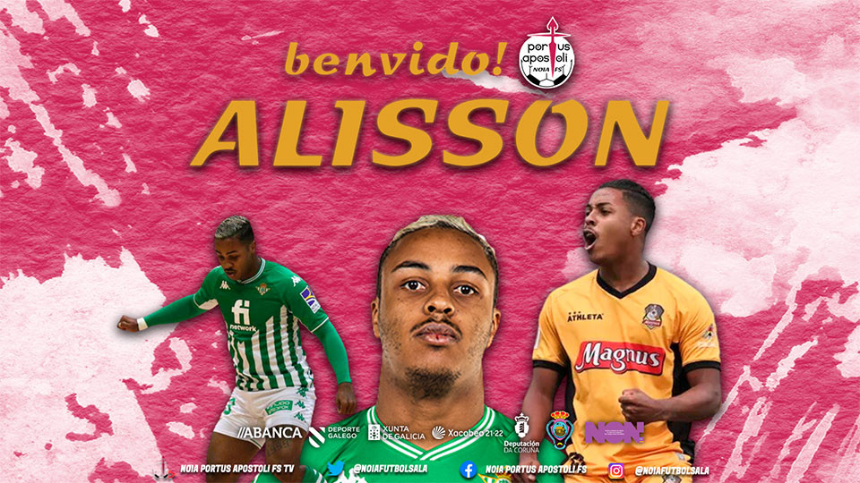 Alisson Neves de Lima (10/01/1999, Guarulhos, São Paulo, Brasil) se incorpora a la primera plantilla de Noia Portus Apostoli para la temporada 2022/23, siendo el séptimo fichaje del plantel blanco. El jugador de 23 años llega a Noia como cedido por el Palma Futsal.