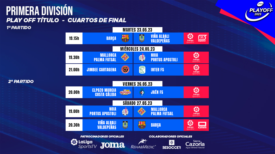 • MALLORCA PALMA FUTSAL – NOIA PORTUS APOSTOLI, miércoles 24/05/2023 a las 19:30 en LaLigaSportsTV