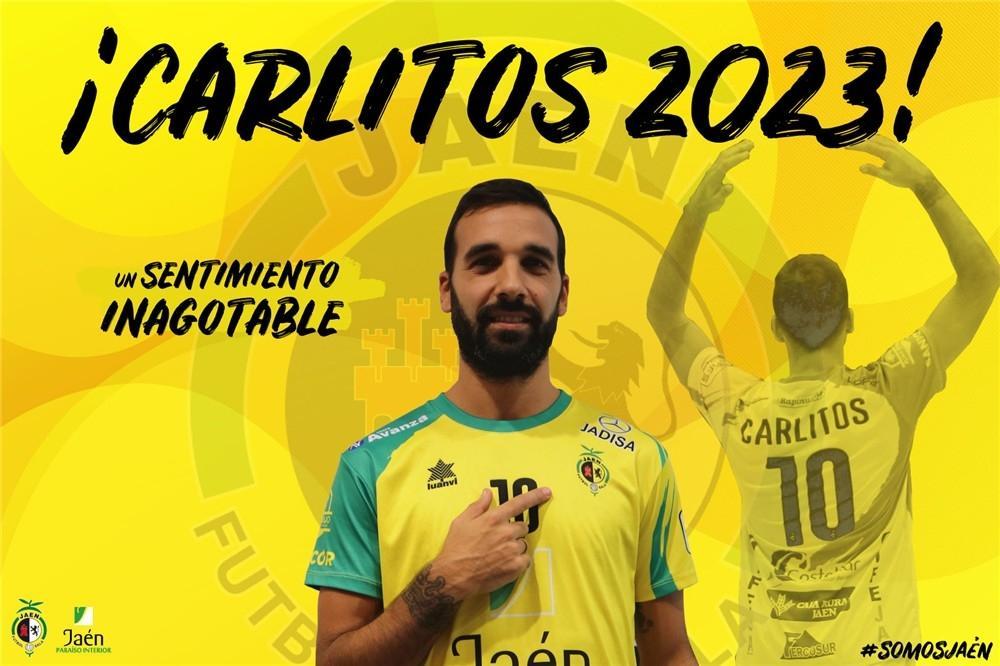 Jaén Paraíso Interior FS anunció “que uno de baluartes del equipo permanecerá en nuestras filas muchos años más. Carlitos ha aceptado la oferta que le ha hecho nuestra dirección deportiva para continuar vistiendo de amarillo hasta el año 2023. El nuevo contrato que han firmado futbolista y club recoge que este tendrá validez por las próximas tres temporadas y además el club se reserva la opción de ampliarlo por una más”.