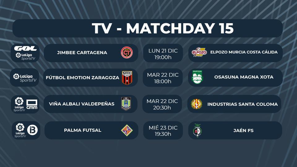 Ya el martes, Fútbol Emotion Zaragoza y Osasuna Magna Xota se verán las caras en el Pabellón Siglo XXI desde las 18:0, con las cámaras de LaLigaSportsTV como testigo de un duelo entre dos equipos que luchan por entrar en la Copa de España. A las 20:30 y por LaLigaSportsTV y CMM llegará el turno del partido que medirá al Viña Albali Valdepeñas con Industrias Santa Coloma, en un duelo que David Ramos, entrenador de los azulones, ha calificado como “una final”.