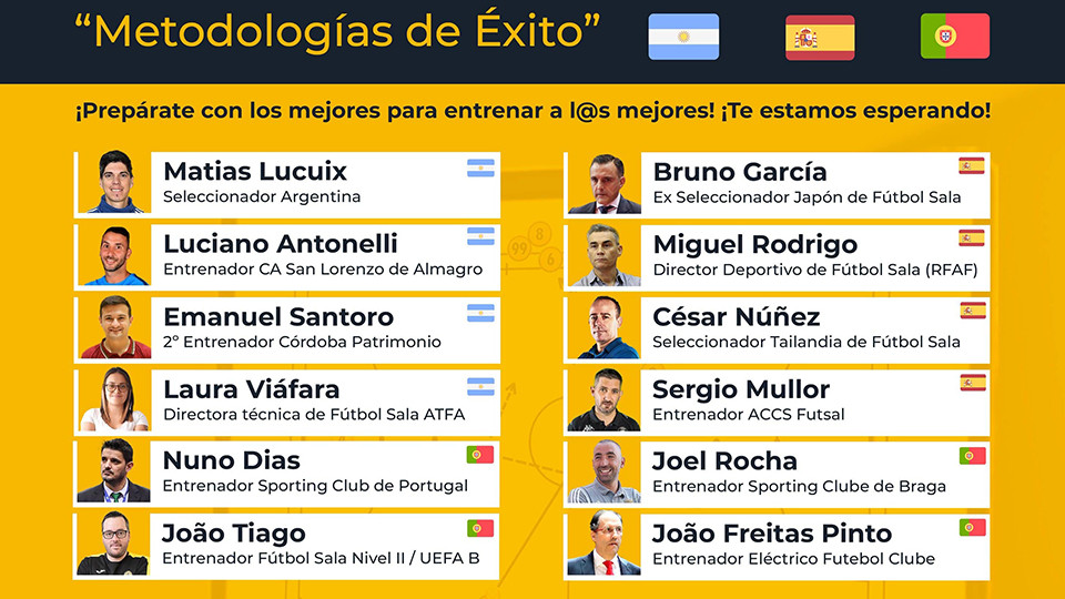 A lo largo de sesenta días podrás disfrutar de todos nuestros ponentes de reconocido prestigio, que compartirán su conocimiento con todos los inscritos en uno de los eventos formativos para entrenadores/ras de fútbol sala más consolidados dentro de los Clínics enfocados a técnicos de Fútbol Sala.
