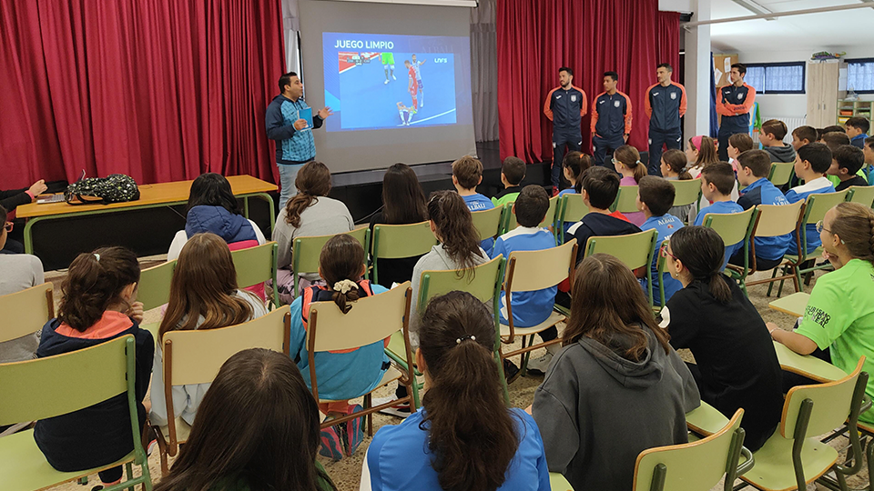 Dichos jugadores se han presentado, mostrando sus habilidades a través de unos vídeos, han ofrecido una pequeña charla sobre la importancia del ejercicio físico y la alimentación saludable, el respeto y la igualdad y la formación académica paralelamente a la deportiva, antes de ponerse a disposición de los alumnos y alumnas para el turno de preguntas.