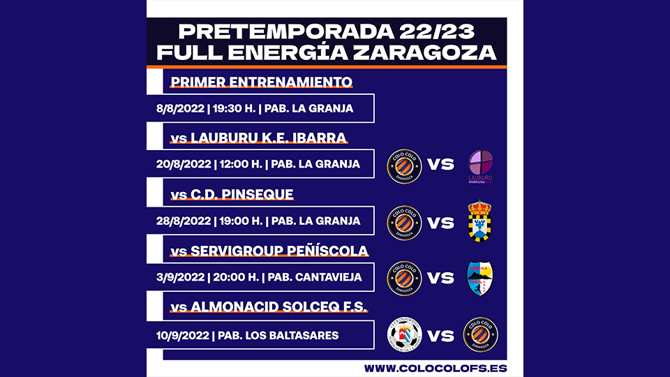 - 3 de septiembre (Pab. Cantavieja – 20:00 horas): Full Energía Zaragoza – Peñíscola FS (Segunda División).