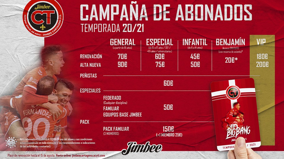 La venta de abonos se inicia este viernes de forma presencial en la tienda del club, aunque se podrá acceder a la plataforma de venta online que, como novedad, se pone en marcha este año: https://jimbeecartagena.acyti.com/