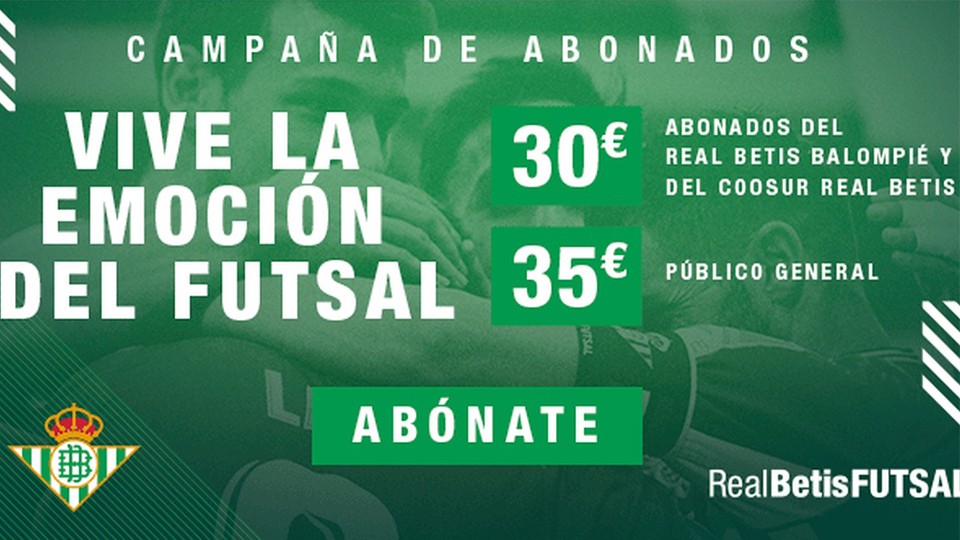 Coincidiendo con el cambio de sede, el Real Betis Futsal pone en marcha su primera campaña de abonos. Los socios del Real Betis y Coosur Real Betis podrán obtenerlo a partir de mañana a las 12:00 horas desde la web oficial del Club al precio único de 30 euros, mientras que el resto de público podrá hacerlo por 35.