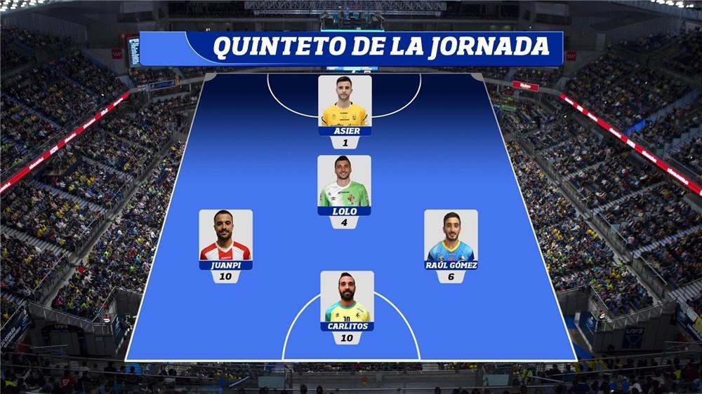 En la posición de cierre se halla Lolo, del Palma Futsal. El jugador del conjunto insular fue pieza clave en el triunfo de los de Vadillo sobre Industrias Santa Coloma, contribuyendo a ello con un gol, el que significó el definitivo 5-2.