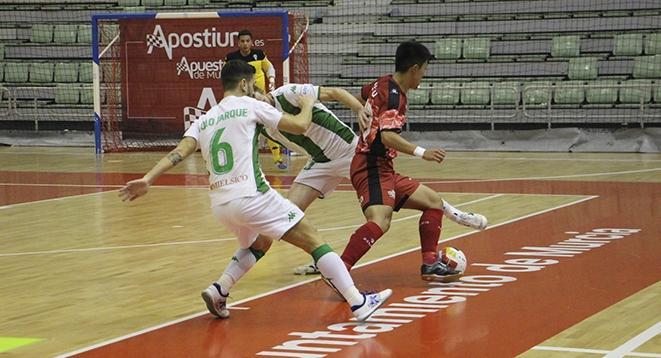 El meta de los charcuteros tuvo bastante trabajo en los primeros minutos del encuentro para evitar el empate visitante, hasta que en el minuto 9 Cordero abrió la lata cordobesa con un potente derechazo que hacía justicia a lo que se estaba viendo sobre pista del Palacio de los Deportes de Murcia.