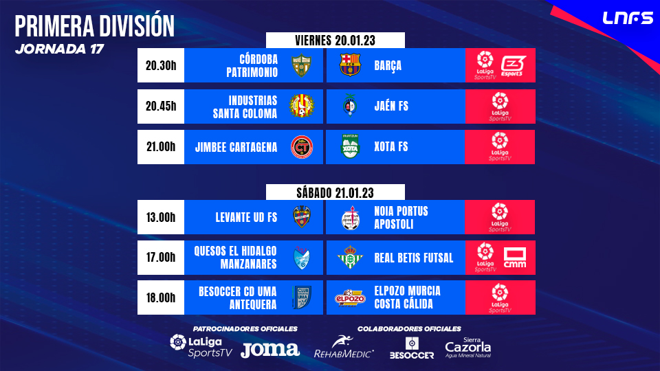 • QUESOS EL HIDALGO MANZANARES – REAL BETIS FUTSAL, sábado 21/01/2023 a las 17:00 horas en LaLigaSportsTV / CMMTV