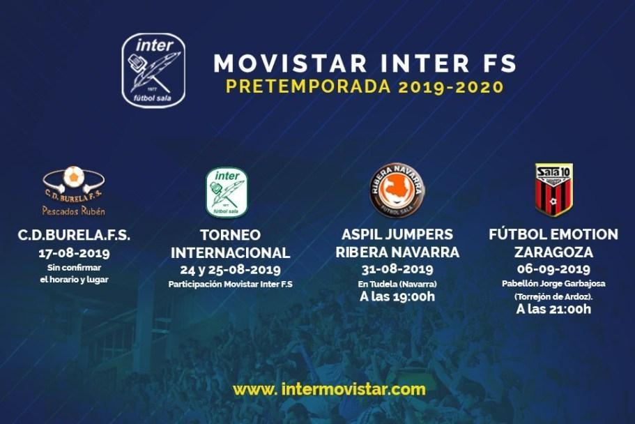 Por último, el 6 de septiembre Movistar Inter jugará un partido de presentación del equipo contra Fútbol Emotion Zaragoza que tendrá lugar en el Pabellón Jorge Garbajosa de Torrejón de Ardoz, y con el que pondrán fin a la pretemporada que tiene como objetivo que los jugadores de Movistar Inter vuelvan a la pista en sus mejores condiciones.