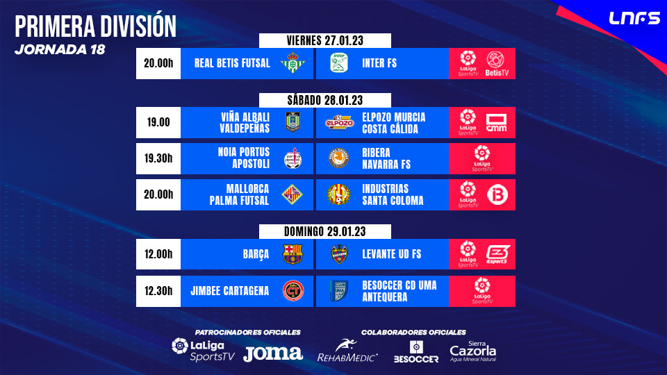 - NOIA PORTUS APOSTOLI – RIBERA NAVARRA FS, sábado 28/01/2023 a las 19:30 horas en LaLigaSportsTV | ¡En directo AQUÍ!